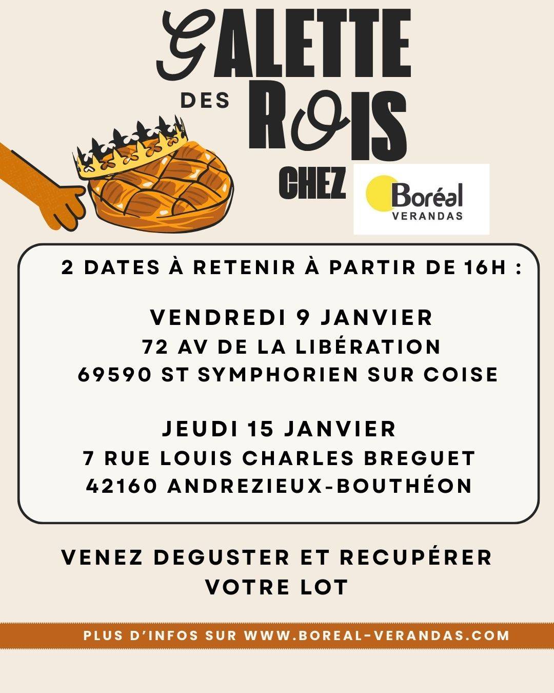 Comme chaque année, Boréal vérandas est heureux de vous inviter à partager un moment convivial pour célébrer la nouvelle année et la traditionnelle Galette des Rois.